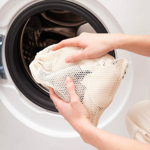 Il suffit de le rincer à l’eau ou de le passer en machine. Il ressort comme neuf et prêt à être réutilisé.